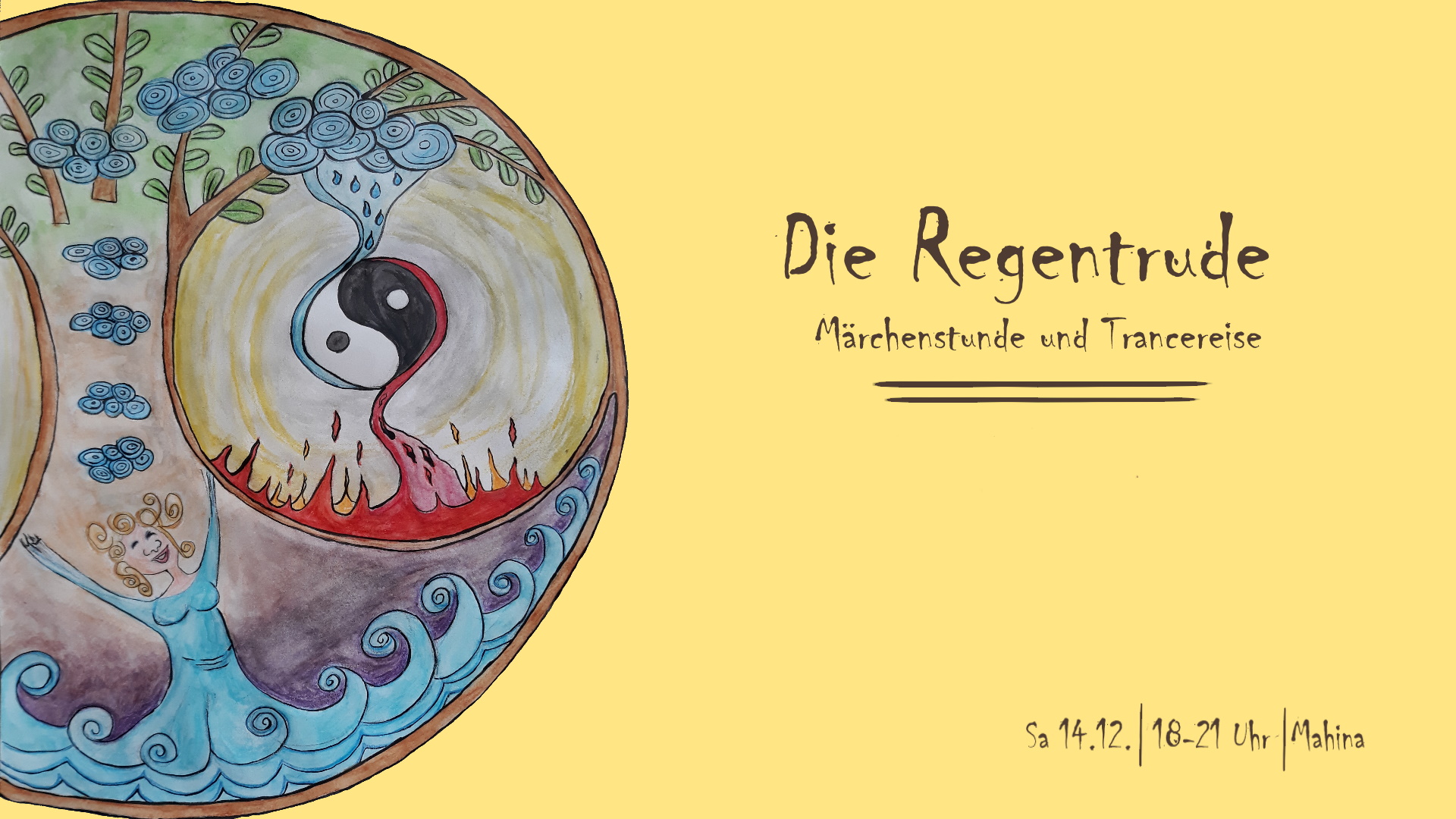 Mit dampfendem Tee und von wohligem Duft umhüllt werden wir uns aufs Schaffell kuscheln und lauschen der Geschichte der Regentrude. Das Märchen erzählt uns von den Elementen Feuer und Wasser, von der Rückbesinnung auf die Natur und dem Gleichgewicht der Kräfte.